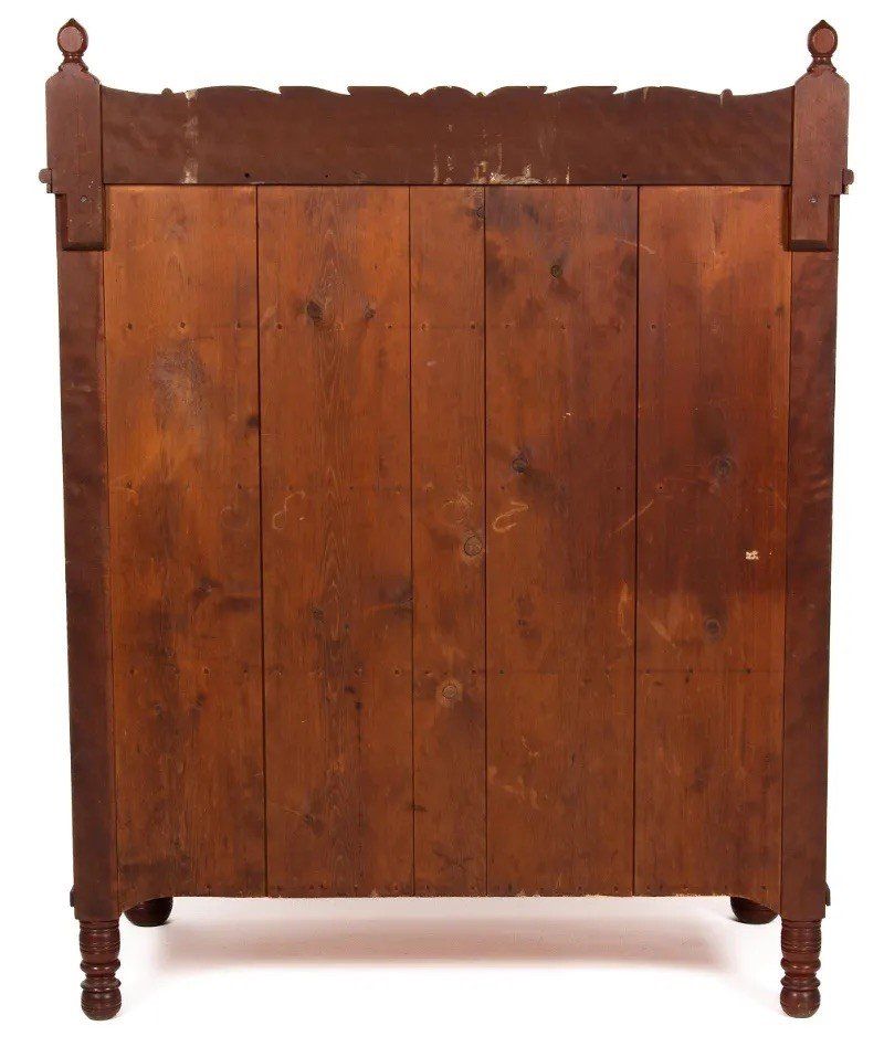 Dating is c. 1820-1830. Pine and basswood secondary woods. Possibly Ohio or New York. Measures 46 ½" tall (HOA), 38 ¼" wide and 19 ¼" deep.
