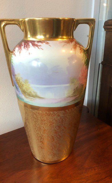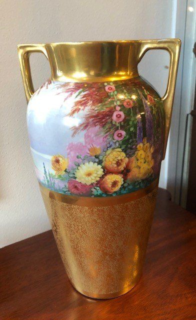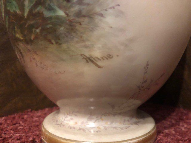 Decorated by Pickard Studios in Chicago, Illinois, c. 1919-1922, using a Bavarian blank by Heinrich and Company in Selb, Germany. According to Alan Reed, the author of The Collector’s Encyclopedia of Pickard China, the artist Louis H. Falatek was born in the Hungarian portion of the Austrian Empire in 1894, emigrated to the United States at the age of 20 just prior to the start of World War I in 1914, and worked at Pickard Studios from 1912 to the early 1920s. Good overall condition. Measures 11 ¾" tall and 7" diameter. SOLD